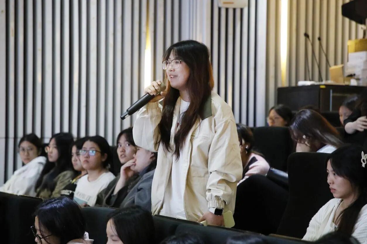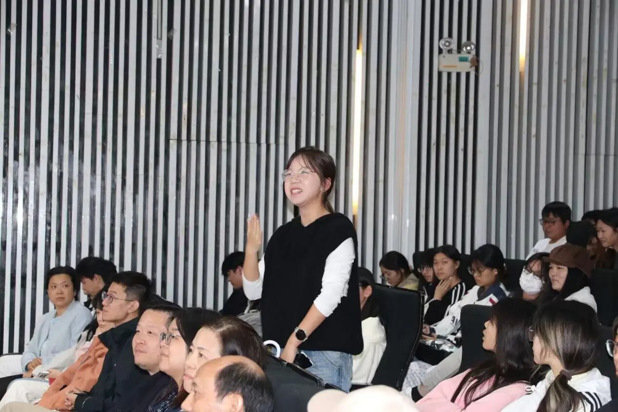 互动环节气氛热烈。2023级文化产业管理专业方鹏程就“在全球化多中心背景下,文化产业管理学子如何在国际协作链条中找准定位”提问,同专业的陈玉婷同学关注“AI时代应如何调整学习方向以保持竞争力”,2024级旅游管理与服务教育专业李梦林结合自己博物馆讲解实践,请教了从基础岗位走向国际舞台的可能路径,高翔鹏同学则希望探索学生群体低成本接触国际资源、拓宽视野的可行模式。