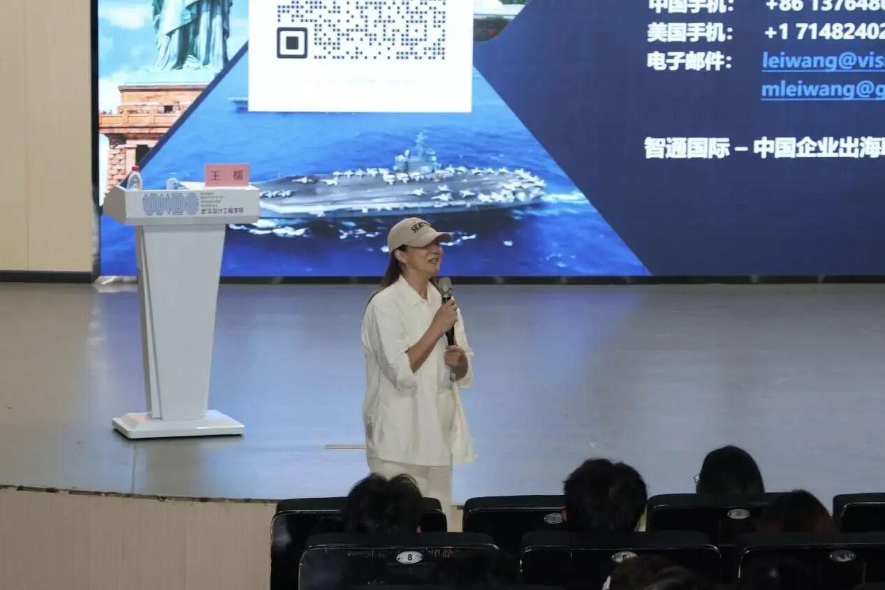 2025年10月15日下午,由产学研中心、文化创意管理学院、国际交流处、联合主办的《从武汉走向世界:青年学生的国际机遇》专题讲座在咏归小礼堂顺利举行。讲座特邀美国智通国际董事长、美国中国总商会洛杉矶分会副会长王檑先生担任主讲。校董事魏彬女士、校产学研中心主任涂清、教务处副处长郑碧玉、文化创意管理学院党总支书记胡紫玲、院长湛柏明、副院长祁峰以及学院200多名师生共同参加讲座。讲座由学院张瑞琴老师主持。