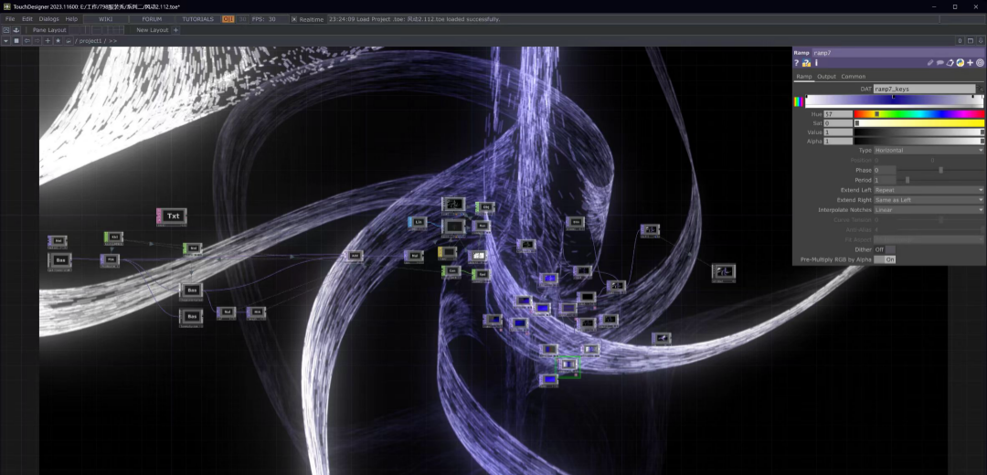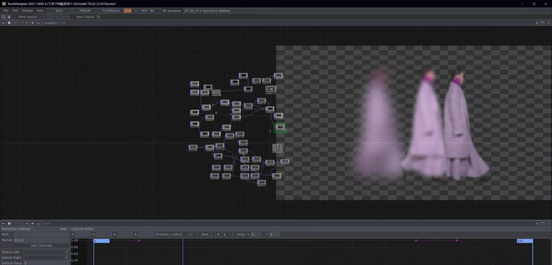 胡娟老师则表示,全息投影上的粒子系统不是随机点阵,而是结合设计理念与算法语言完成的视觉演绎。“我们希望模拟出设计师服装作品的哲学之美,希望呈现一种介于纺织品物理质感与数字流动性之间的全新形态,相比直观的风车,这个形式有更强的表达性和想象力,而且,它就来源于设计师——包蕾老师的作品本身!”